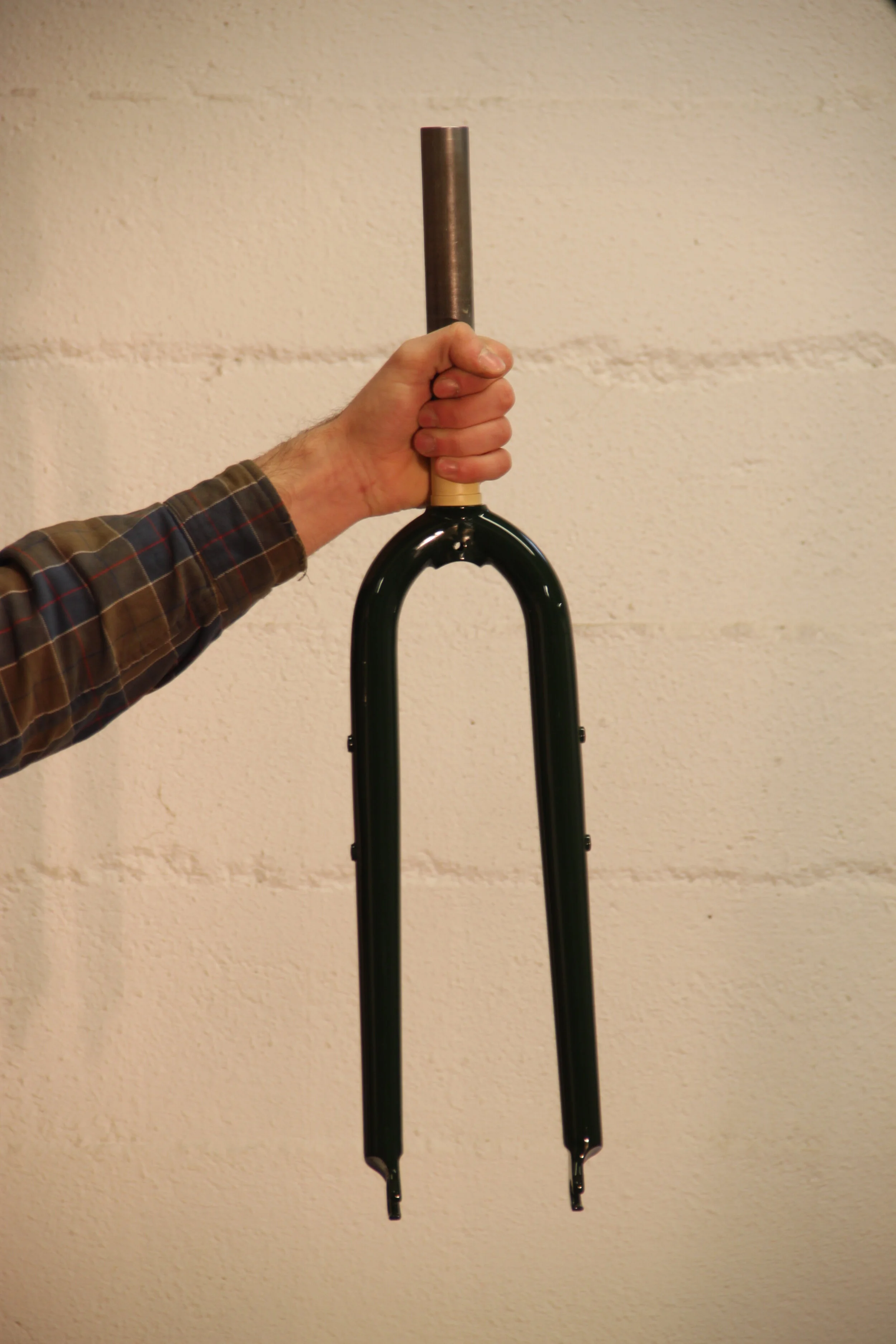 Un des premiers cadres sortie de l’atelier. Joris souhaitait en avoir un usage quotidien et équipé pour les sorties un peu plus “dirty” du weekend. Pas de fioritures, le cadre a été réalisé avec l’essentiel: tubes cromoly en épaisseur fine mais constante, soudobrasé mais sans polissage des soudure. Bref “made to shred” !